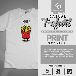 Get ready to stand out with our Friend Fries Cotton Bio Wash 180gsm T-shirt! Made from high-quality 100% cotton, this tee is not only comfy but also long-lasting. With a crew neck and half sleeves, it's perfect for any occasion - from casual to parties. Proudly made in India, our unique printed graphics add a fun twist to any outfit. Check out THE PRINT PLATTER for more trendy tees!