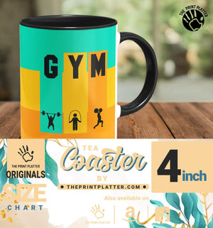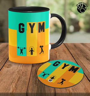 GYM Inside Black Cermic Coffee Mug With Tea Coster 330 ml, Microwave & Dishwasher Safe| TM-R32