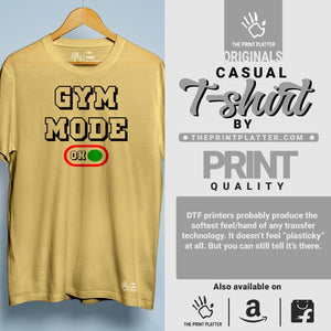 Get ready to be the center of attention with our Gym Mode On T-shirt! Made from high-quality 100% cotton, this comfortable and durable t-shirt is perfect for any occasion. With a stylish crew neckline and trendy half sleeves, you can show off your unique style. Proudly made in India, this t-shirt features unique graphics from our brand THE PRINT PLATTER. Upgrade your wardrobe with our quirky t-shirts now!