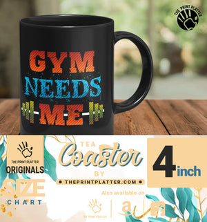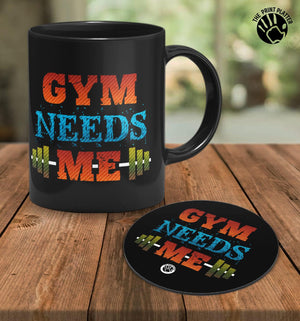 Gym Needs Me Full Black Cermic Coffee Mug With Tea Coster 330 ml, Microwave & Dishwasher Safe| TM-R27