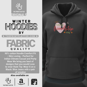 Happy Friendship Day Cotton Bio Wash 330gsm Sweatshirt with Hood for Winter | H-R401
