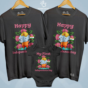 Happy Independence Day Unisex Cotton Bio Wash 180gsm T-shirt + Half Sleeve Romper Combo | 3Combo-IndependenceDay-6