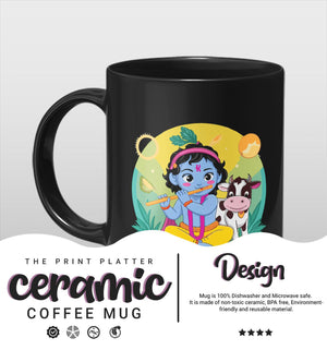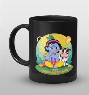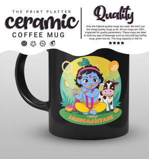 Happy Janmashtami Full Black Cermic Coffee Mug 330 ml, Microwave & Dishwasher Safe| CM-13