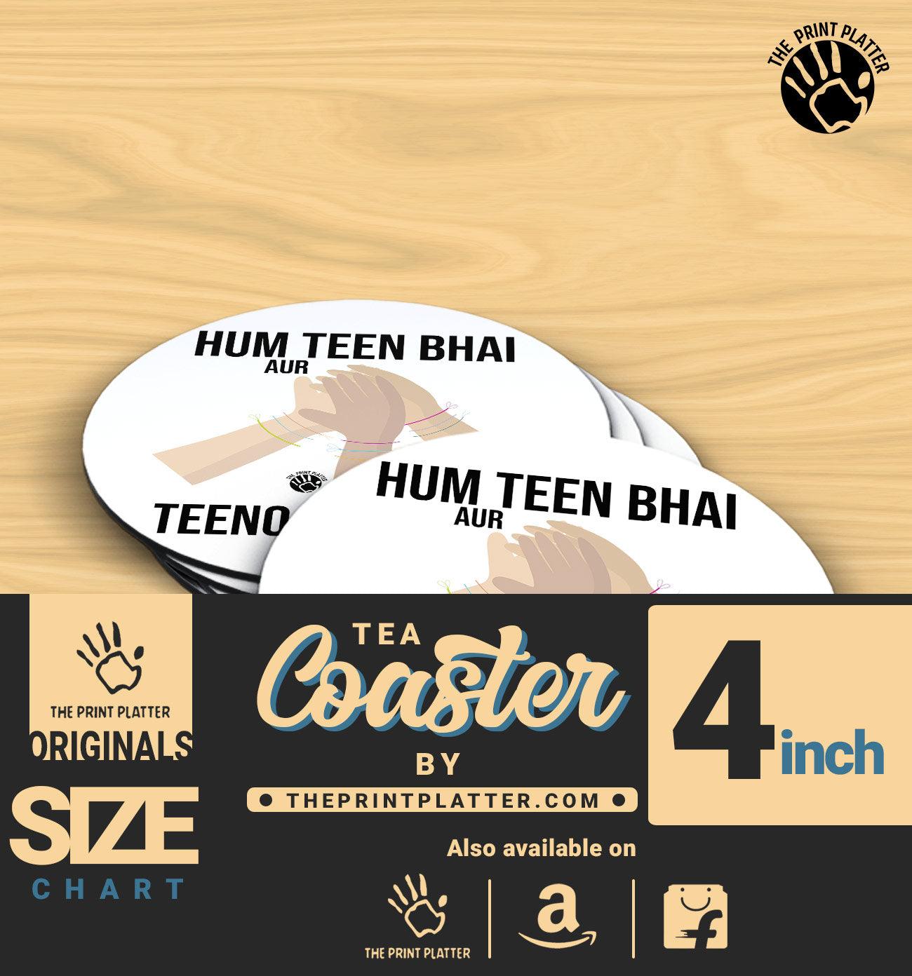 Hum Teen Bhai Aur Teeno He Tabahi - MDF Tea Coaster Pack Of 4 | TC-11