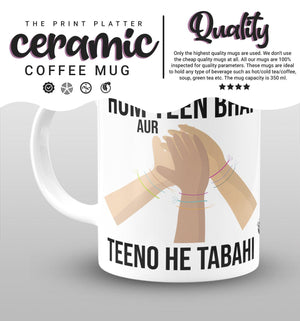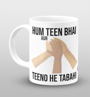 Hum Teen Bhai or Teeno hi Tabahi White Cermic Coffee Mug 330 ml, Microwave & Dishwasher Safe| CM-11