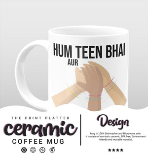 Introducing the Hum Teen Bhai or Teeno hi Tabahi White Cermic Coffee Mug - a fun and quirky way to enjoy your favorite drink. Made from environmentally friendly and BPA-free materials, it's safe for both the dishwasher and microwave. Plus, it's reusable and comes in a 350 ml capacity, perfect for gifting to your dear brother. (Comes with 3-layer thermocol safe packaging!)