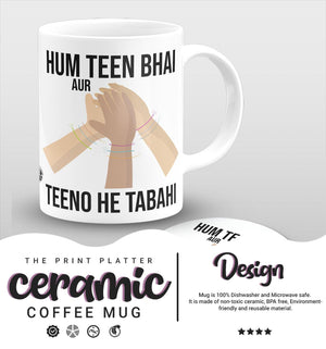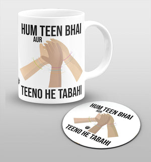 Hum Teen Bhai Or Teeno He Tabahi White cermic Coffee Mug With Tea Coster 330 ml, Microwave & Dishwasher Safe | TM-11-1