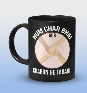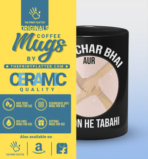 Hum Char Bhai aur Charon hi Tabahi Full Black Cermic Coffee Mug 330 ml, Microwave & Dishwasher Safe| CM-12