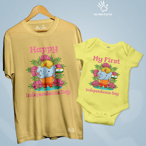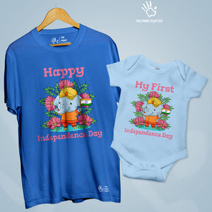 Independence Day Unisex Cotton Bio Wash 180gsm T-shirt + Half Sleeve Romper Combo | Combo-IndependenceDay-6