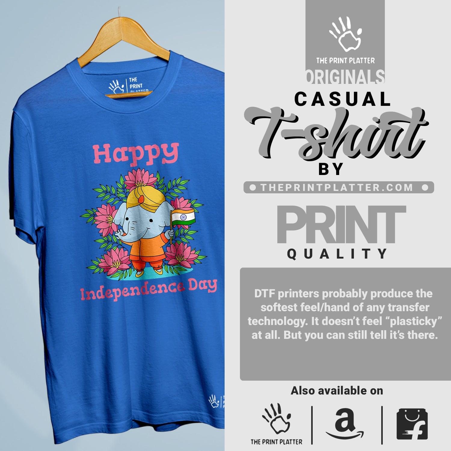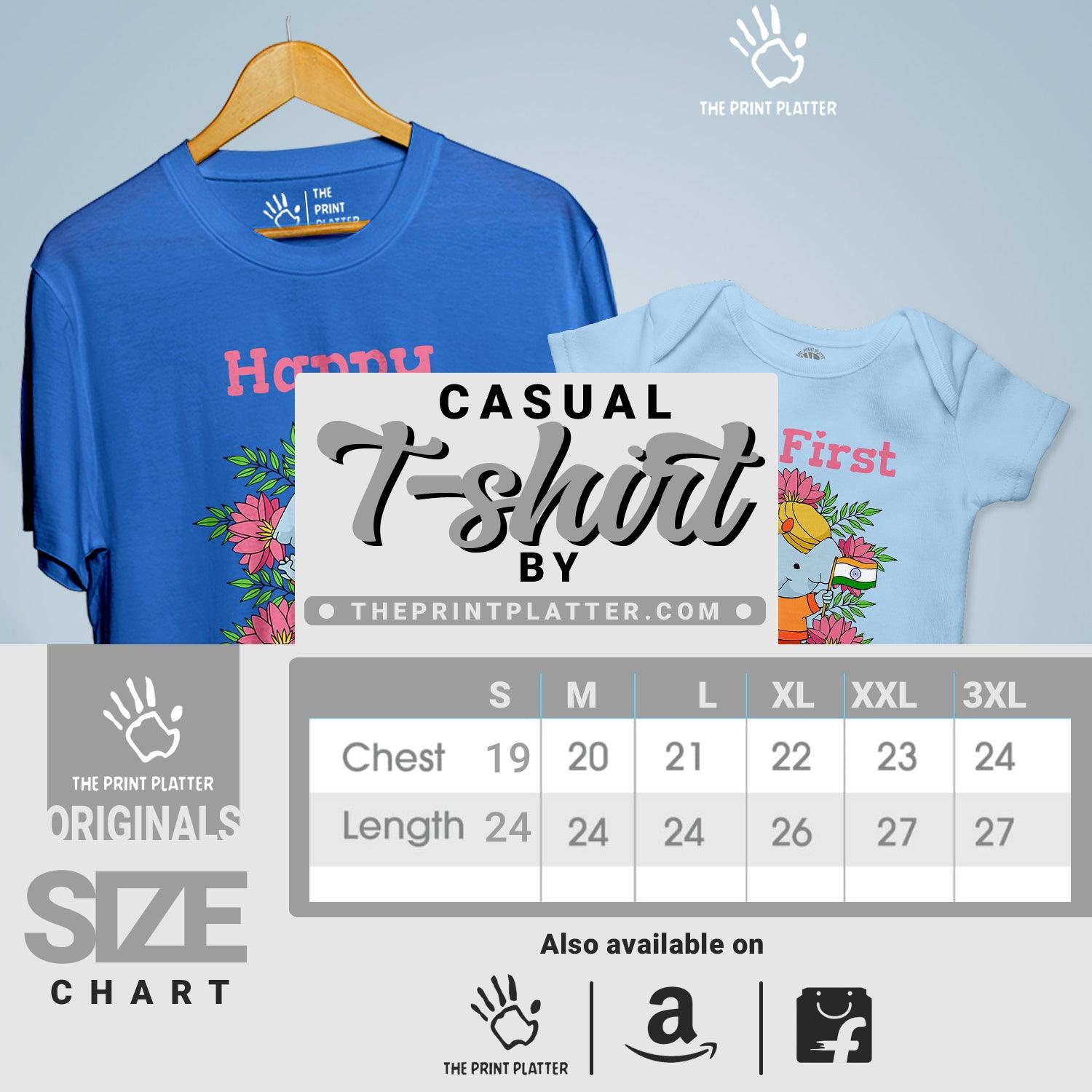 Be the talk of the town in our Independence Day Unisex Cotton Bio Wash 180gsm T-shirt + Half Sleeve Romper Combo! Made from high-quality 100% cotton, this t-shirt is not only comfortable but also durable. With a crew neckline and half sleeves, it's perfect for any occasion. Proudly crafted in India with unique printed graphics from THE PRINT PLATTER, this combo is a must-have for your wardrobe.