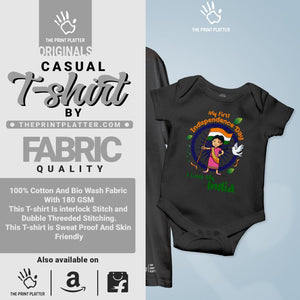 Independence Day I Love My India Unisex Cotton Bio Wash 180gsm T-shirt + Half Sleeve Romper Combo | Combo-IndependenceDay-5