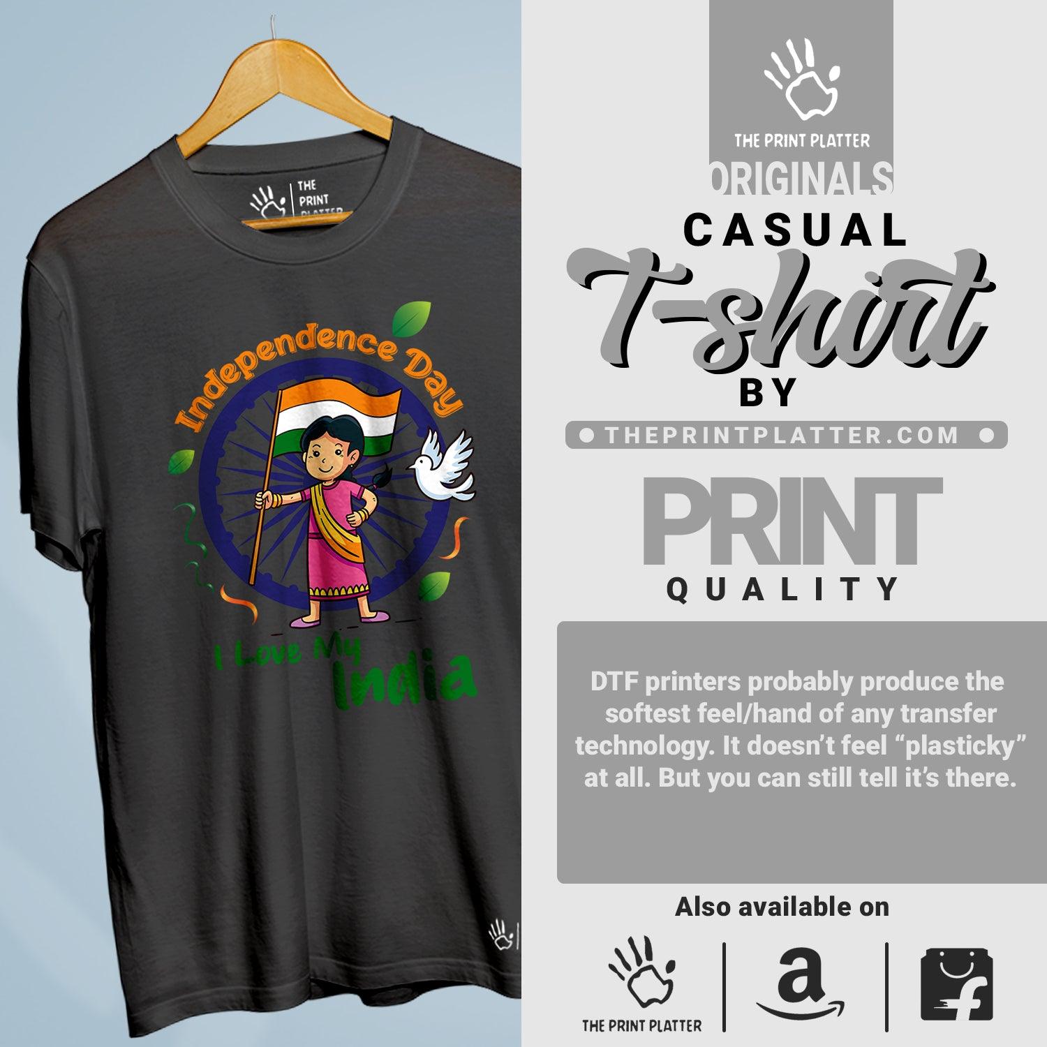 Spice up your wardrobe with our Independence Day I Love My India Cotton T-shirt and Romper Combo! Made from 100% high-quality cotton, this durable and comfortable outfit is perfect for any occasion. Show off your unique style with our quirky printed graphics. Proudly crafted in India, it's a must-have addition to your collection. From casual to party wear, channel your inner trendsetter with THE PRINT PLATTER.