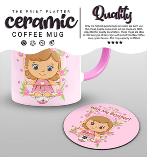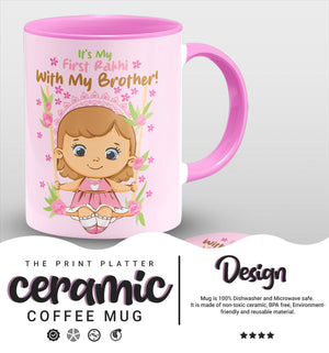 It's My First Rakhi With My Brother Inside Pink Cermic Coffee Mug With Tea Coster 330 ml, Microwave & Dishwasher Safe | TM-18