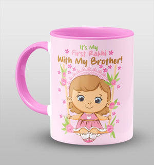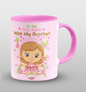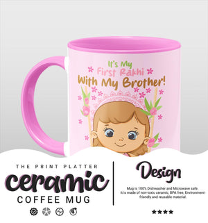 It's My First Rakhi With My Brother In Side Pink Cermic Coffee Mug 330 ml, Microwave & Dishwasher Safe| CM-18