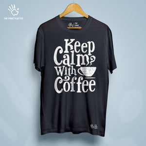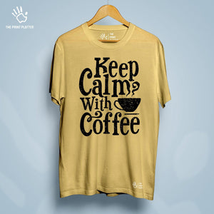 Keep Calm With Coffee Cotton Bio Wash 180gsm T-shirt | T-R283