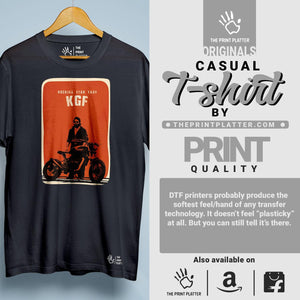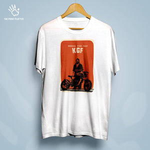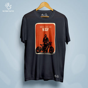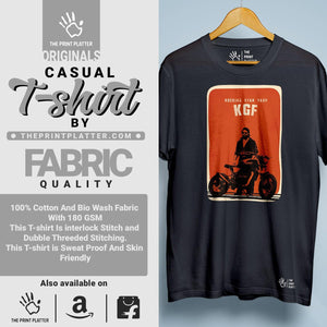 Elevate your style game with our KGF Cotton Bio Wash 180gsm T-shirt! Made from high-quality cotton, this classic fit tee is both comfortable and long-lasting. With a crew neckline and half sleeves, it's perfect for any occasion. Proudly crafted and made in India, it's a must-have addition to your wardrobe! From THE PRINT PLATTER - for more stylish and quirky tees!