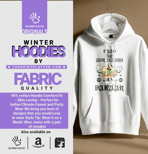 Celebrate the joy of life with the Khao Piyo Hoodie, a unisex casual wear piece that embodies the spirit of indulgence and contentment. Crafted from a soft cotton-polyester blend, this hoodie offers a comfortable fit for both men and women. Its minimalist design features the phrase "Khao Piyo Aish Karo" prominently, making it a versatile addition to any wardrobe. Whether you're lounging at home or heading out with friends, this hoodie is your go-to choice for a casual yet meaningful look.Amazon