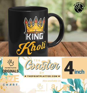King Kohli Full Black Cermic Coffee Mug With Tea Coster 330 ml, Microwave & Dishwasher Safe| TM-R185