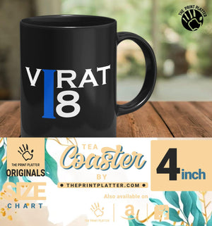 King Kohli Full Black Cermic Coffee Mug With Tea Coster 330 ml, Microwave & Dishwasher Safe| TM-R189