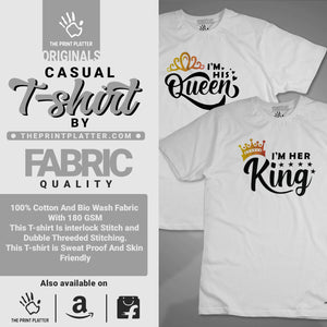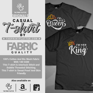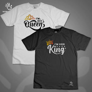 King & Queen T-Shirt Set – 100% Cotton | Bio-Wash | 180 GSM | T29-IamHer&His