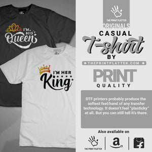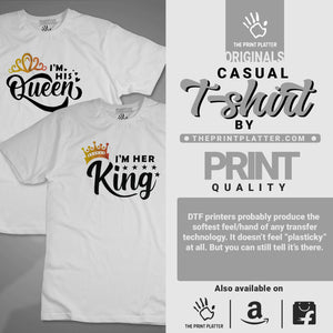 With a 180 GSM fabric weight, these tees provide the perfect mix of comfort and durability, making them ideal for daily wear, casual outings, or special couple moments. The bold “I Am Her King” and “I Am His Queen” prints make a meaningful statement, showing the world who you belong to—with pride and love.