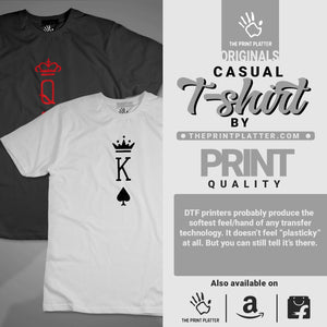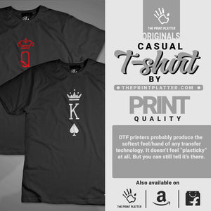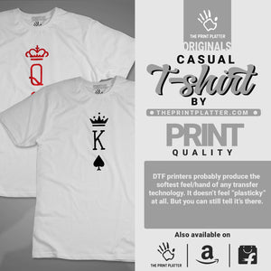 Crafted from 100% premium cotton and finished with a bio-wash, these t-shirts feel incredibly soft, breathable, and skin-friendly. The elegant and striking King & Queen graphics are printed with high-quality inks that stay vibrant after every wash.