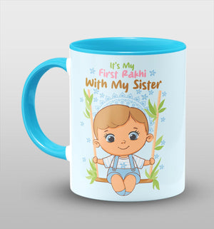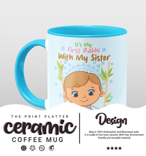 It's My First Rakhi With My Sister In Side Blue Cermic Coffee Mug 330 ml, Microwave & Dishwasher Safe| CM-18