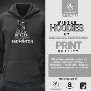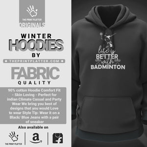 Life is Better With Badminton Cotton Bio Wash 330gsm Sweatshirt with Hood for Winter | H-R169
