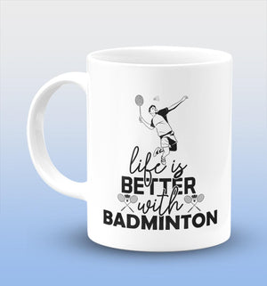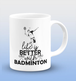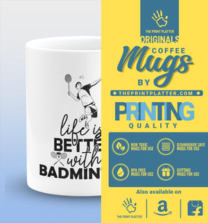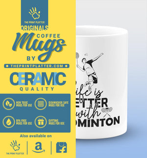 Life is Better With Badminton White Cermic Coffee Mug 330 ml, Microwave & Dishwasher Safe| CM-R169
