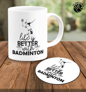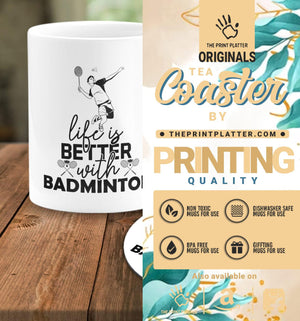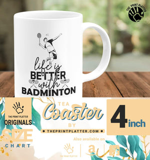 Life is Better With Badminton White Cermic Coffee Mug With Tea Coster 330 ml, Microwave & Dishwasher Safe| TM-R169