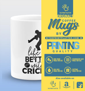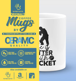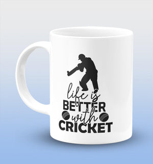 Life is better with Cricket White Cermic Coffee Mug 330 ml, Microwave & Dishwasher Safe| CM-R159