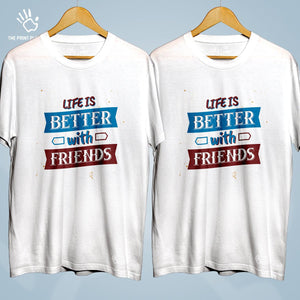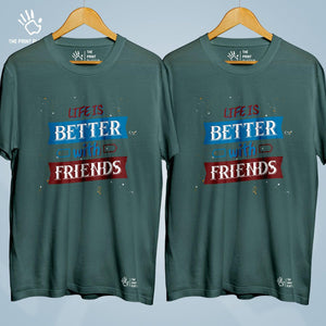 Life Is Better With Friends Cotton Bio Wash 180gsm T-shirt | Combo-FriendshipDay-10-LBWF