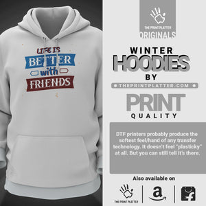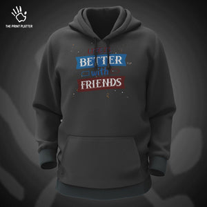 Life Is Better With Friends Cotton Bio Wash 330gsm Sweatshirt with Hood for Winter | H-R403
