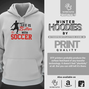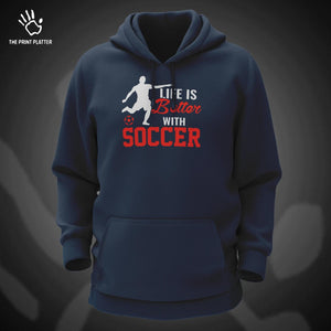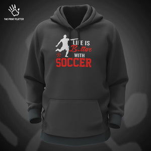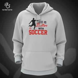 Life Is Better With Soccer Cotton Bio Wash 330gsm Sweatshirt with Hood for Winter | H-R158