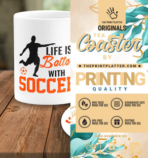 Life is Better With Soccer Forced to Work White Cermic Coffee Mug With Tea Coster 330 ml, Microwave & Dishwasher Safe| TM-R158