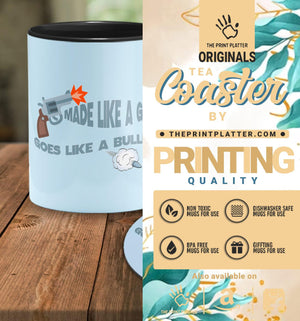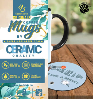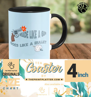 Made Like a Gun Goes Like a Bullet Inside Black Cermic Coffee Mug With Tea Coster 330 ml, Microwave & Dishwasher Safe| TM-R134