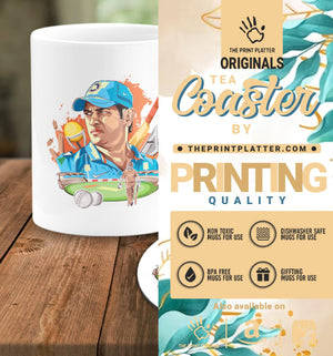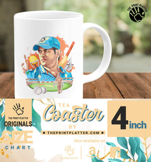 MS Dhoni White Cermic Coffee Mug With Tea Coster 330 ml, Microwave & Dishwasher Safe| TM-R73