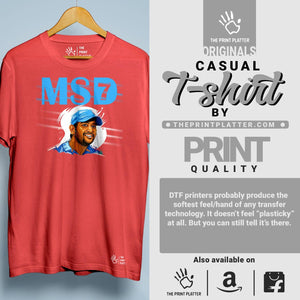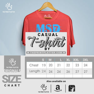 Stay cool and stylish in our MSD7 Cotton Bio Wash 180gsm T-shirt! Made from high-quality 100% cotton, this durable and comfortable classic fit t-shirt is perfect for all occasions. Featuring a crew neckline, half sleeves, and trendy printed graphics, it's a must-have addition to your wardrobe. Proudly made in India, exclusively from THE PRINT PLATTER.