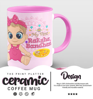 My First Raksha Bandhan Inside Pink Cermic Coffee Mug With Tea Coster 330 ml, Microwave & Dishwasher Safe | TM-19