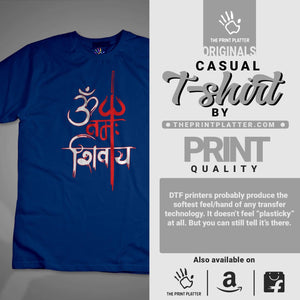 Get ready to impress with our Namah Shivay Cotton Bio Wash T-shirt! Made from high-quality 100% cotton, this classic fit tee is not only comfy but also durable. Perfect for any occasion - from casual to parties. Proudly crafted in India, channel your trendsetter vibes with our unique graphic prints. Available from THE PRINT PLATTER.