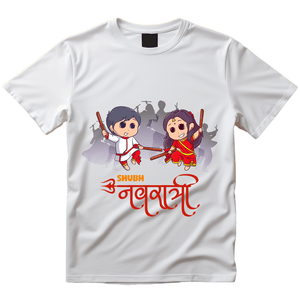 - Festive Designs: Adorned with intricate patterns and inspiring messages, our t-shirts celebrate the spirit of Navratri.