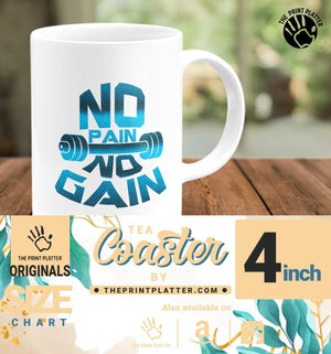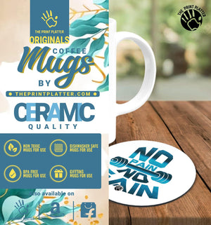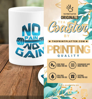 No Gain No Pain White Cermic Coffee Mug With Tea Coster 330 ml, Microwave & Dishwasher Safe| TM-R35