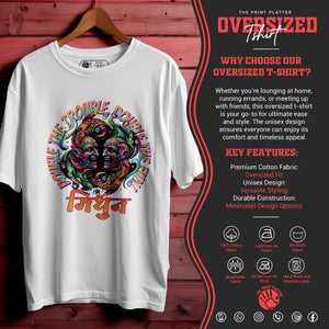 Celebrate the duality and versatility of the Mithun (Gemini) zodiac sign with our Mithun Oversized Unisex T-Shirt. Designed for both men and women, this t-shirt captures the essence of Gemini — adaptable, communicative, and intellectually curious. Whether you're a proud Gemini or admire the traits of this air sign, this tee is a perfect addition to your wardrobe.