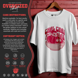 Made with 100% soft, breathable cotton, it ensures all-day comfort while keeping your style game strong. The relaxed oversized fit suits everyone, making it a must-have for both men and women who live and breathe "Chai peene ka swag"!