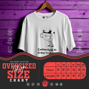 Crafted from 100% premium cotton, it features a soft, breathable feel and a relaxed oversized fit for both men and women. Designed for modern desi vibes with a universal appeal — because coffee isn’t just a drink, it's an emotion.