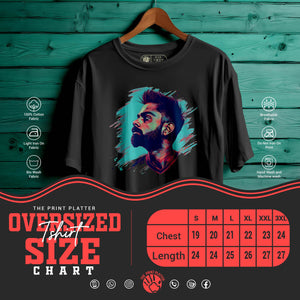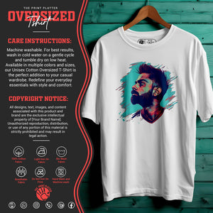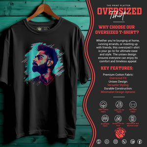 Crafted from 100% premium cotton, it offers a soft, breathable feel, ensuring comfort throughout the day. The oversized fit provides a relaxed silhouette, making it ideal for various occasions. The design features elements inspired by Virat Kohli's iconic moments, making it a subtle yet stylish statement piece.