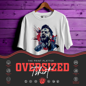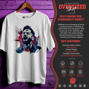 Crafted from 100% premium cotton, it offers a soft, breathable feel, ensuring comfort throughout the day. The oversized fit provides a relaxed silhouette, making it ideal for various occasions. The design features elements inspired by Virat Kohli's iconic moments, making it a subtle yet stylish statement piece.