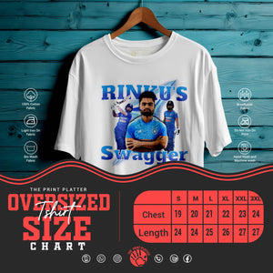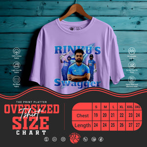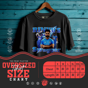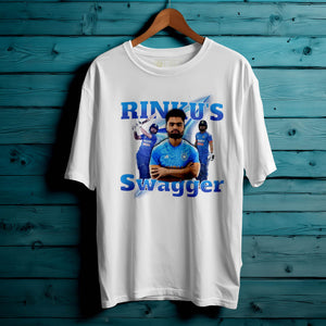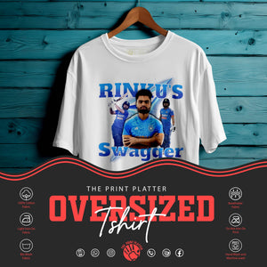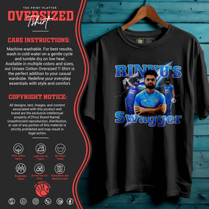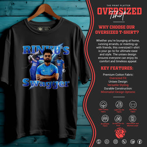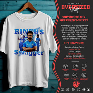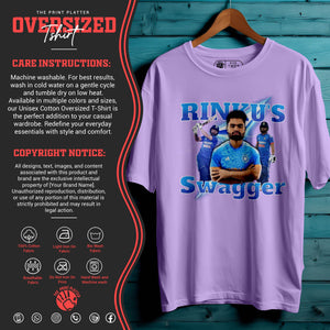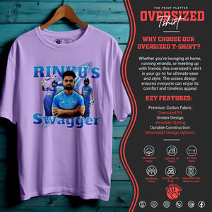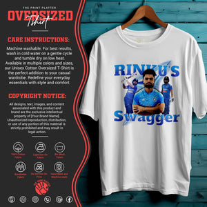 Bring unstoppable energy to your wardrobe with the RINKU'S SWAGGER Oversized Unisex T-Shirt – inspired by the fearless attitude of India’s rising cricket star, Rinku Singh. This tee is all about confidence, power, and swag—perfect for fans who love the game and live with boldness.