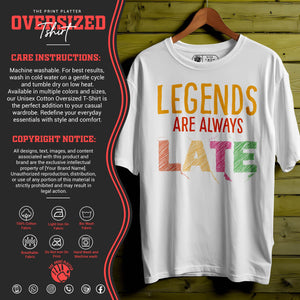 "Legends Are Always Late" Oversized Unisex T-Shirt | Funny Quote Tee | Premium Cotton | Casual Streetwear for Men & Women| 396