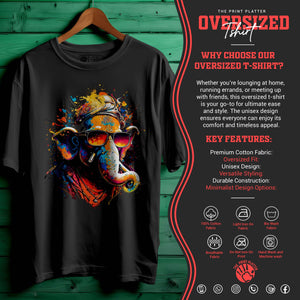 Ganesh Hindu God Wearing Sunglasses Oversized Unisex T-Shirt – Trendy Spiritual Streetwear |448